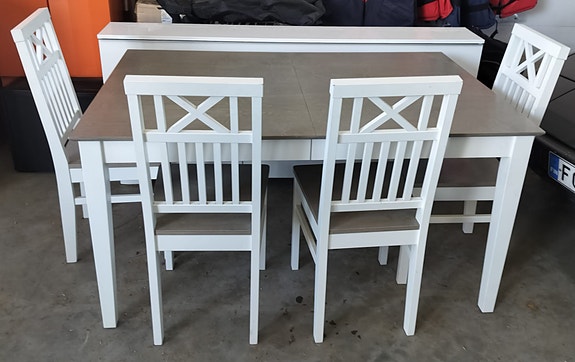 Valkoinen ruokapöytä + 4 tuolia -setti / Set White Dining Table + 4 Chairs