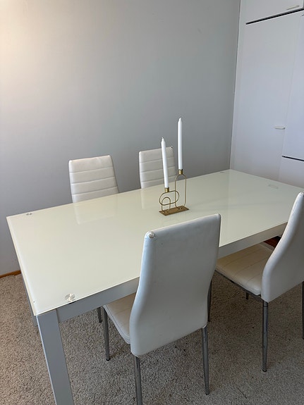 Valkoinen ruokapöytä ja 4 tuolia