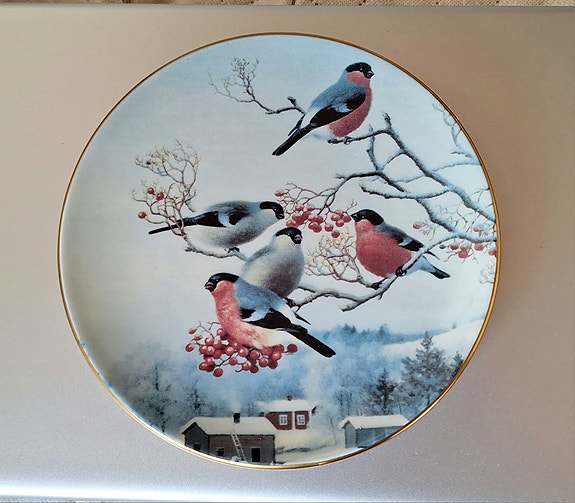 Iittala lautanen kukka- ja lintuaiheinen valkoinen/kulta