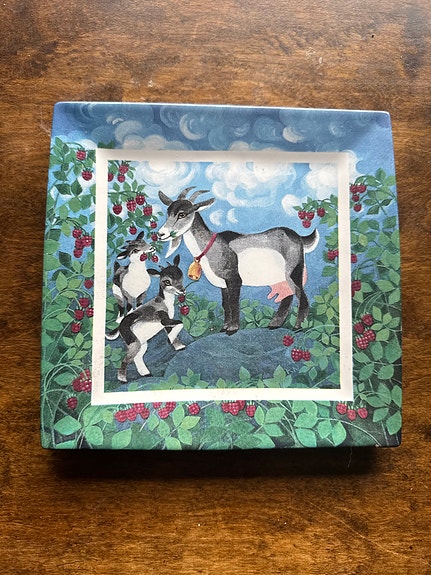 Kermansavi Heinä seinälaatta vuohiaiheinen keramiikka