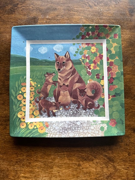 Kettukuvioinen neliömäinen koristekeramiikkalautanen