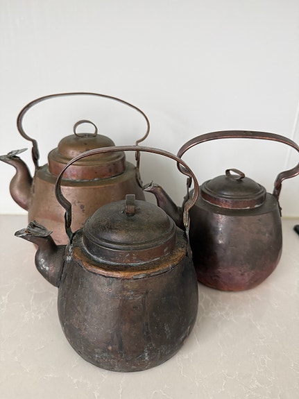 Vanha antiikki metallinen kupari kahvipannu / teepannu, 3 kpl