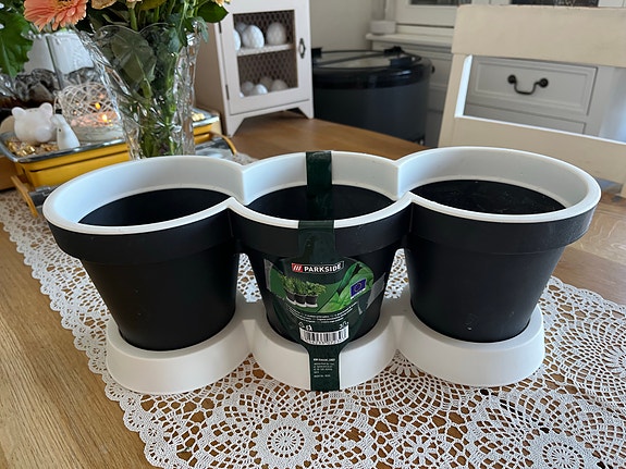 Plastia yrttiruukku kolmiosainen muovi musta-valkoinen