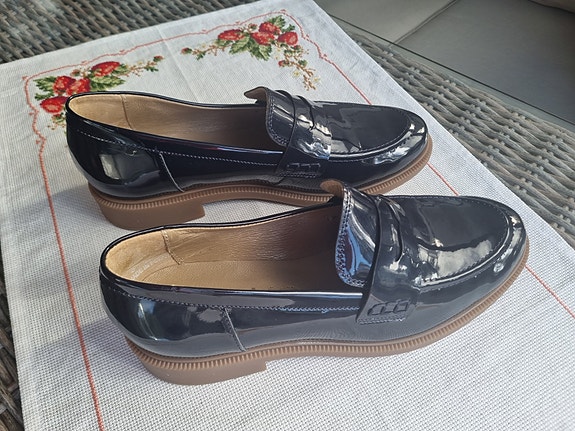Clarks -merkin mustat kiiltonahkaiset Hamble Oak kävelykengät koossa 39