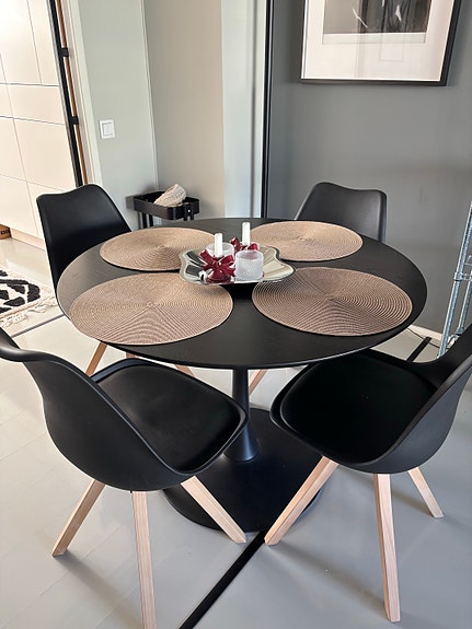 Musta pyöreä ruokapöytä (tuolit +80€)