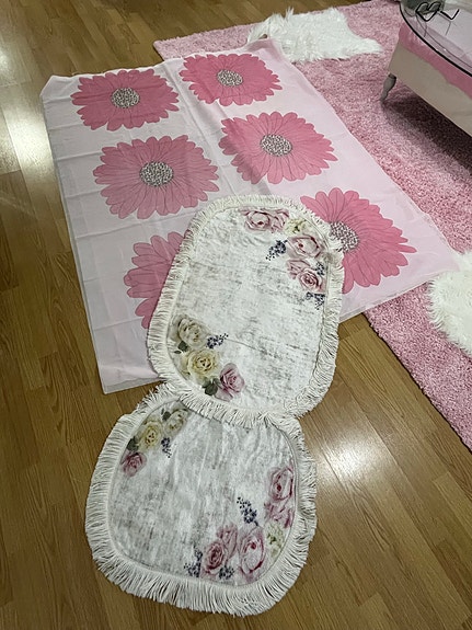 Kylpyhuone matto ja verhot