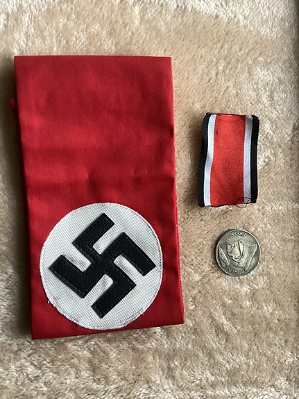 NSDAP hihanauha ja 5 Reichsmark Hitler-kolikko