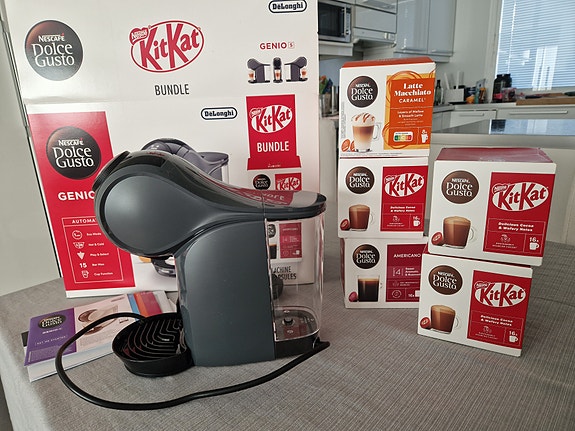 De'Longhi Genio S kapselikahvinkeitin harmaa + kuvan juomakapselit