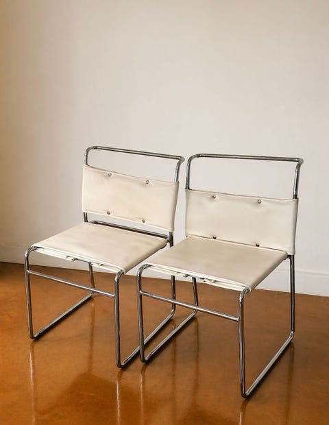 Tyylikkäät nahka vintage kromirunkoiset tuolit (2 kpl)