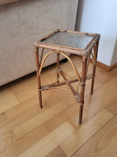 vintage rottinkinen kukkapöytä, rottinki sivupöytä