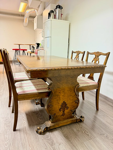 antiikkipöytä + 4 tuolia 1920-1950 luvulta