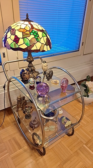 Tarjoiluvaunu, metalli+lasi Heteka