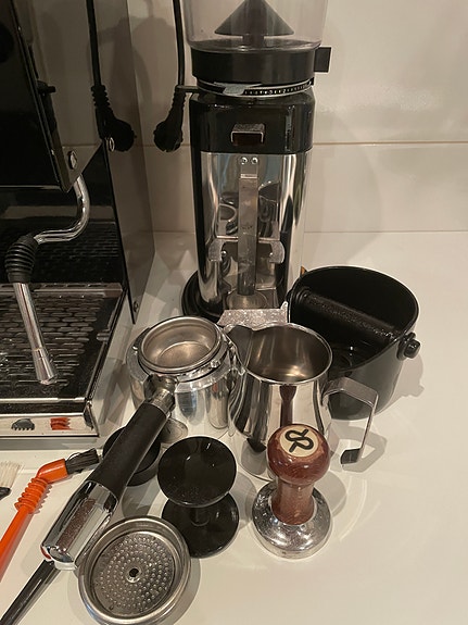 ECM Casa IV espressokeitin ja kahvimylly tarvikkeineen