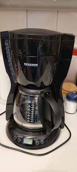 Severin kahvinkeitin musta lasikannulla