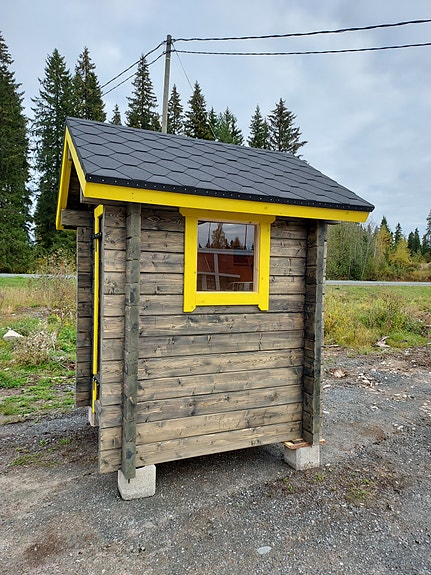 Piharakennus puinen ulkohuussi keltamustalla värityksellä