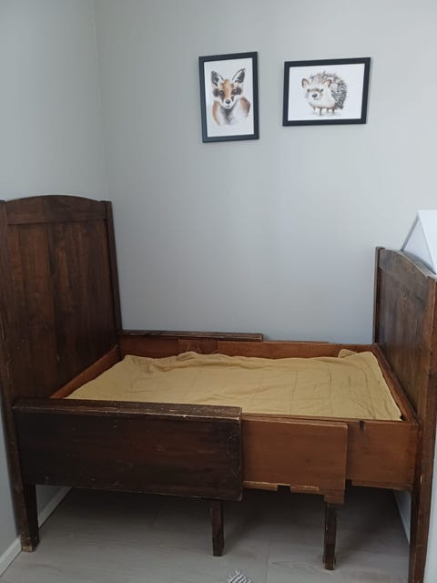 Vanha puinen jatkettava lasten pinnasänky