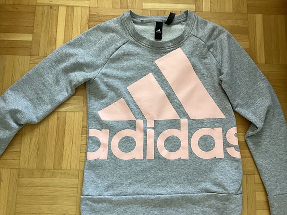 Adidas collegepaita harmaa vaaleanpunaisella logolla koko XS