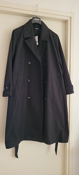 Massimo Dutti pitkä takki naisten L musta polyesteri
