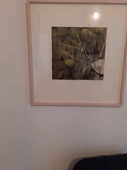 Galleriakehystetty taidegrafiikka lehtiaiheinen