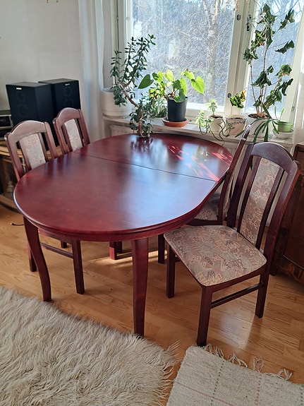 Ruokailuryhmä on usein melko arvokas hankinta ja usein kotona kovassa käytössä. Esimerkiksi taloudessa, jossa on yksi tai useampi pieni lapsi, ruokapöytään ja tuoleihin saattaa tulla naarmuja ja tahroja. Kannattaakin miettiä, voisiko käytetty pöytä olla omaan tarpeeseen riittävä ratkaisu. Ostamalla käytettyjä kodin kalusteita tuet myös kiertotaloutta!