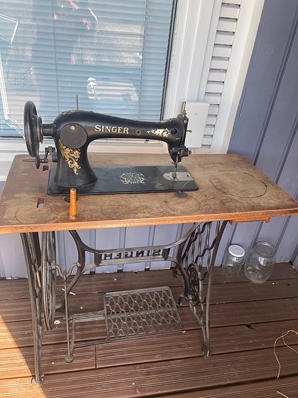 Singer poljettava ompelukone puujalustalla