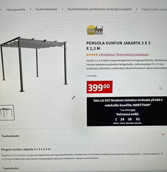 Oma hyväkuntoinen, tarpeettomaksi jäänyt juhlateltta kannattaa laittaa kiertoon, sillä näin siitä on iloa muille juhlien järjestäjille. Ilmoitathan myydessäsi tarkkaan katoksen koko, kunto ja materiaali. Kiinnostavaa tietoa kokoajalle ovat myös käytännön vinkit liittyen kokoamiseen ja linkki alkuperäistuotteeseen, jos sellainen on löydettävissä.