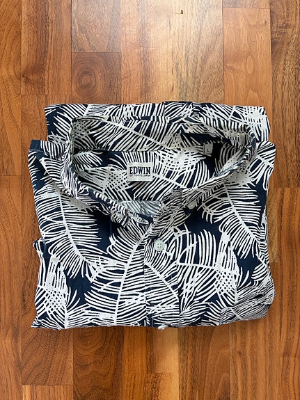 Edwin Japan Classic Regular Shirt Blue Floral Summer Short Sleeve Shirt Size M/L