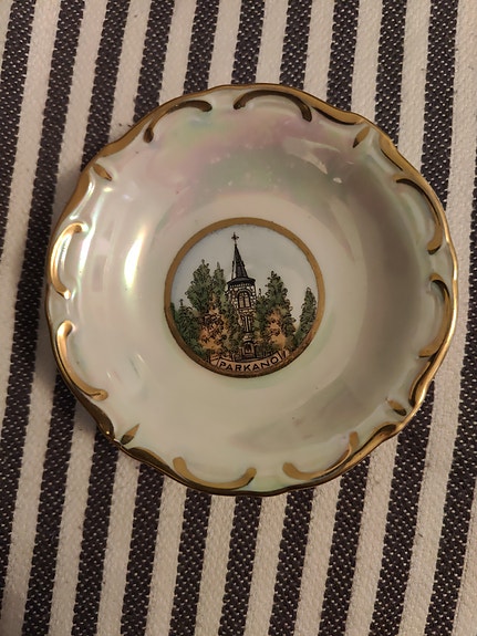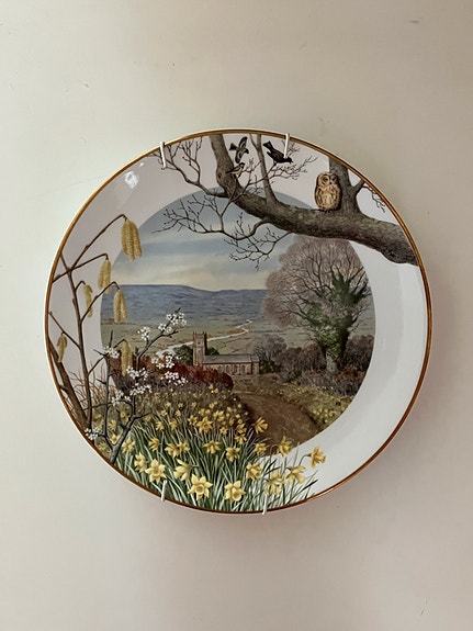 Iittala lautanen kukka- ja lintuaiheinen valkoinen/kulta