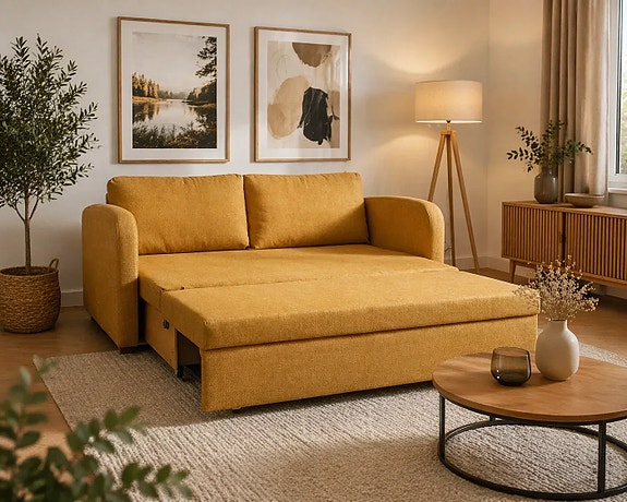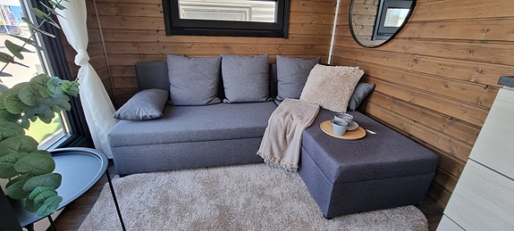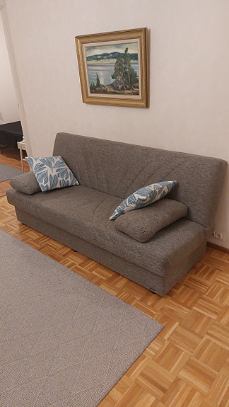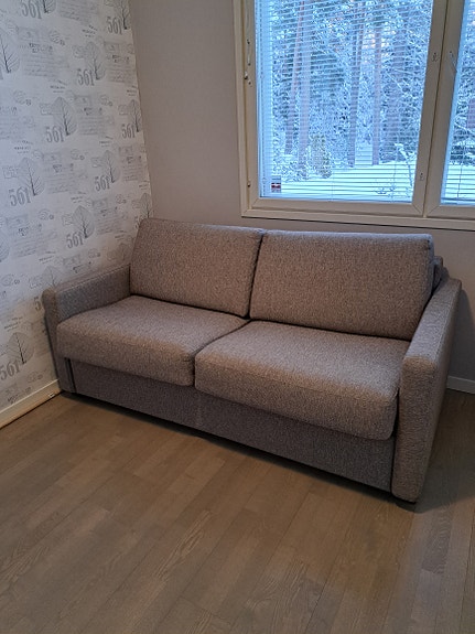 Vuodesohva sopii vieraiden majoitukseen ja omaksi sängyksi pieneen kotiin