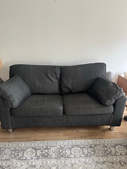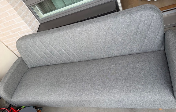 Vaaleanharmaa divaani- vuodesohva
