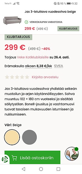 Stemma vuodesohva+rahi ilmainen toimitus"osamaksu mahdollisuus"