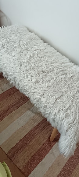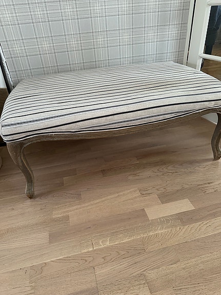 Raidallinen verhoiltu penkki puujaloilla