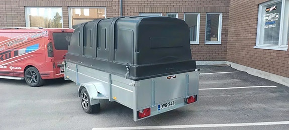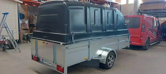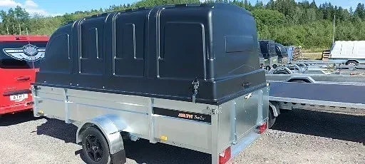 Varastossa ATH-Trailer 350x150x50 musta kuomu Sisäkor. 150cm.
