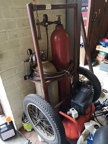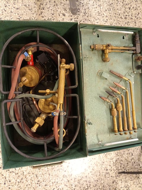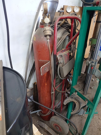 Asetyleeni-happipoltin letkuilla ja säätimillä