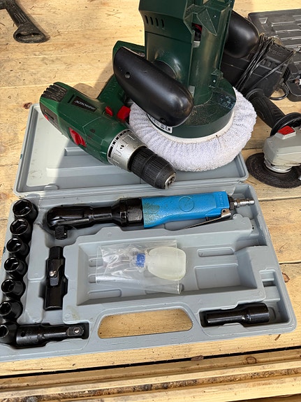 Sekalainen työkalusarja sähkötyökaluilla ja hylsyavaimilla