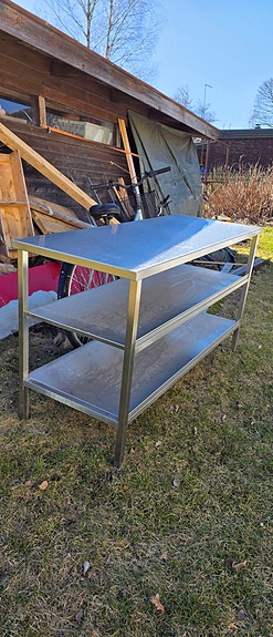 Ruostumaton teräs työtaso kolmella hyllyllä