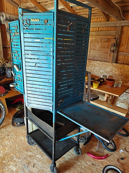 Iso työkalukaappi sivupöydällä