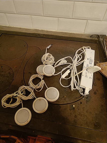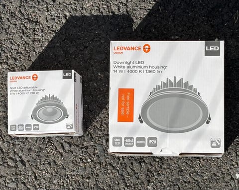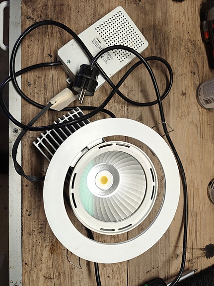 Led-paneeli ja kolme halogen palloa