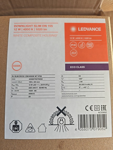 Ledvance Downlight Slim DN 155 alasvalo 12 W 4000 K valkoinen