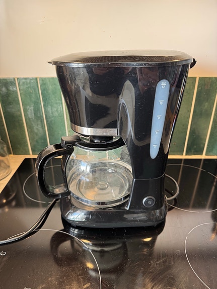 Clas Ohlson kahvinkeitin musta lasikannulla