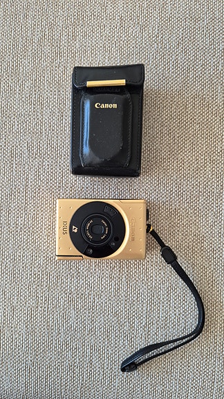 Kultainen Canon Ixus kamera