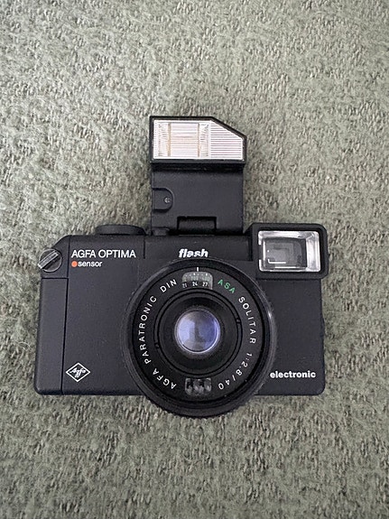 Agfa Optima electronic filmikamera sisäänrakennetulla salamalla
