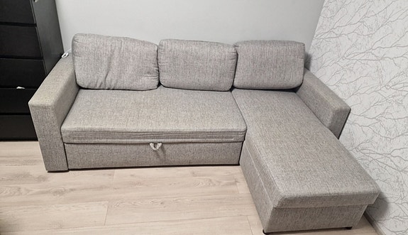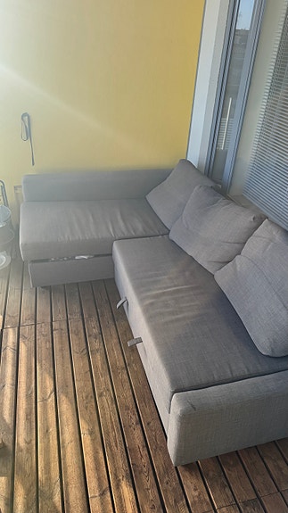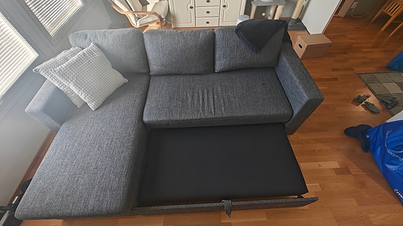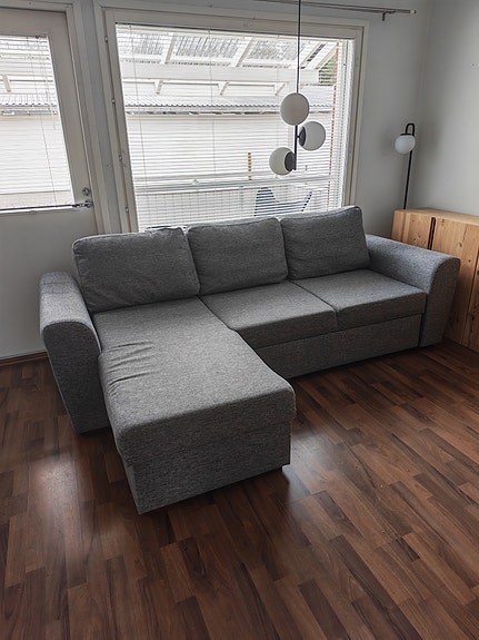 Haalistunut mutta hyvä kulmavuodesohva Ikea Friheten