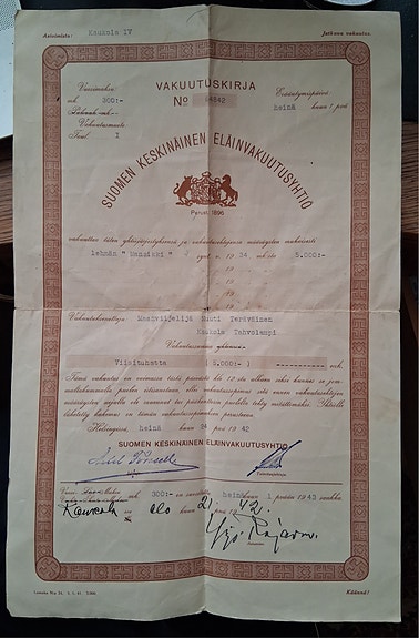 2 €Vakuutuskirja Mansikki Suomen Keskinäinen Eläinvakuutusyhtiö 1942Turku, Turku Keskus, Varsinais-Suomi3 pvOsta hetiLiikkeessä oleva kuorma-autoToriDiiliLisää suosikiksi.Avaa ilmoitus