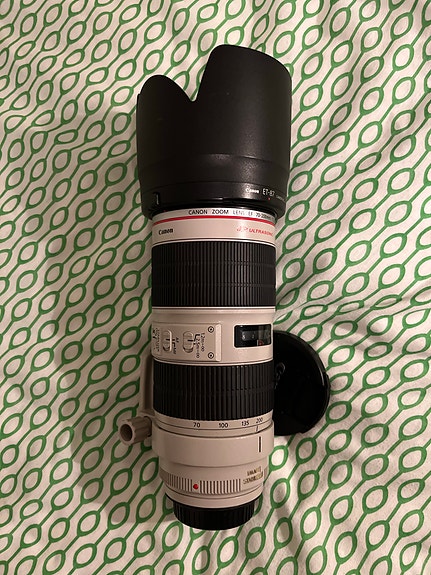 Canon EF 70-200mm f/2.8 L IS II USM -objektiivi ja suojapussi