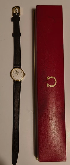 Omega Genève naisten kello 14k kultaa, 1960–70-luku, alkuperäinen boksi