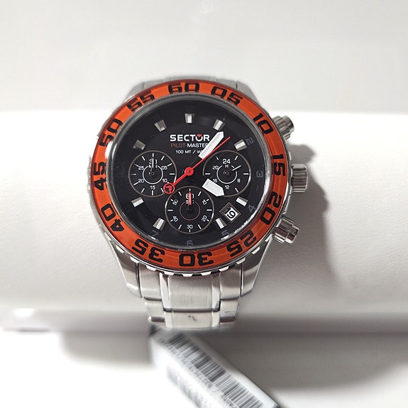 Sector Pilot Master miesten rannekello teräsrannekkeella musta/oranssi NOS