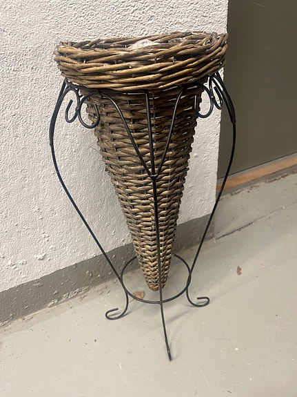 Punottu korkea ruukku metallijalustalla