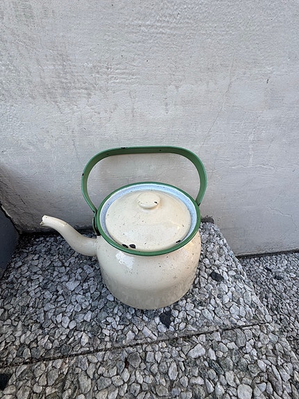 Retro vanha emalipannu puutarhaan