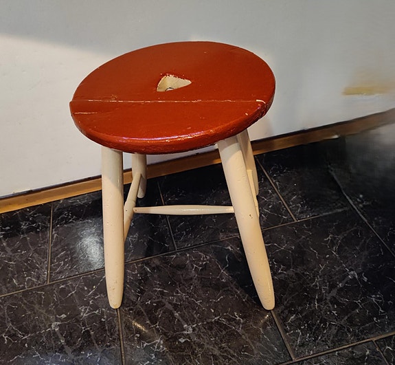 Täyspuinen pyöreä jakkara pyöreä punainen istuinlevy vintage